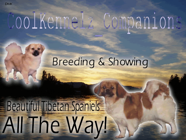 I'm so sorry for you! Well, you are so good I had to come back for more! Kennel Name: CoolKennelz_Companions Breeds: Tibetan Spaniel Background: Sunset over mountains, something beautiful. Slogan: Breeding & Showing Beautiful Tibetan Spaniels All The Way! Colors: I guess whatever goes. |